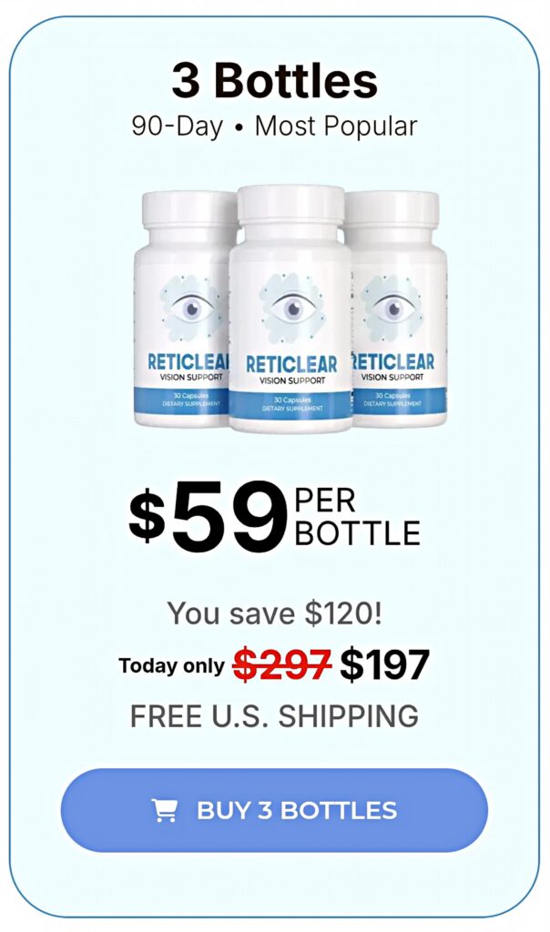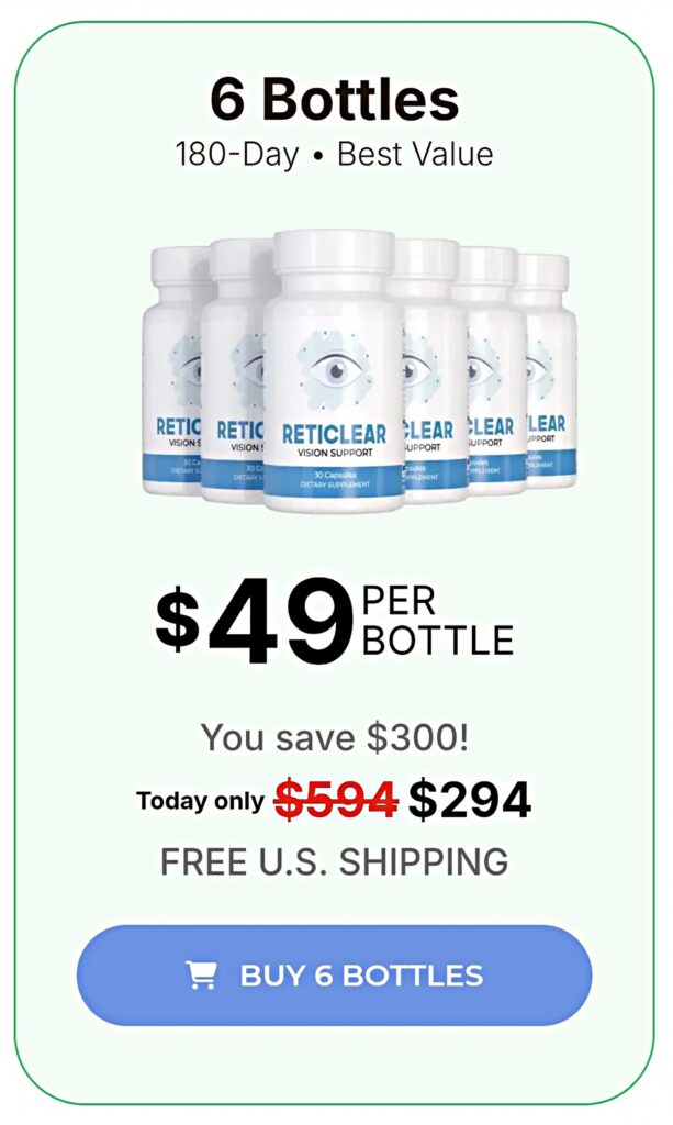 Reticlear is a 100% natural vision-support supplement made in FDA-registered, GMP-certified facilities. It’s designed to help stimulate adult repair stem cells and rejuvenate eye tissue for clearer, sharper sight.